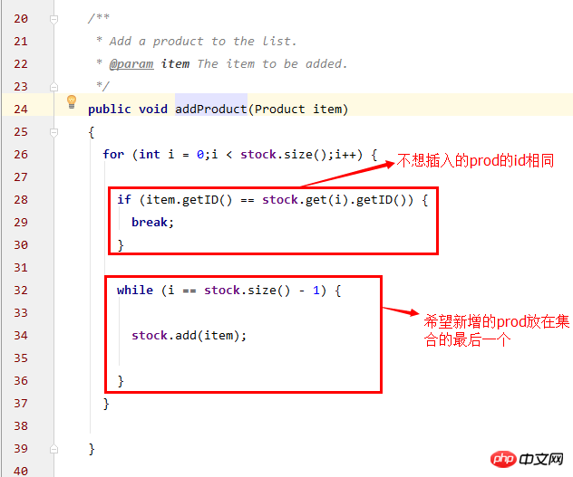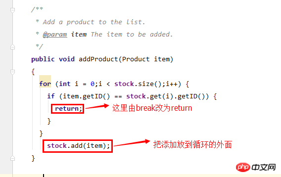 最开始的时候集合stock就是空的,所以第一次addprodcut的时候,这个for循环就走不进去,所以后续也走不进去,因为你的stock.add方法写在循环里了,所以stock集合一直为空