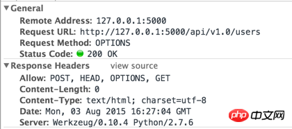 根据 flask 跨域访问装饰器实现 来解决angularjs的跨域访问问题,终端上用curl发送POST、GET请求都成功了,但是在网页上GET请求是正确的,POST请求却出了问题,OPTIONS请求很奇怪,如下: