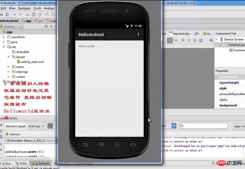 在使用android studio1.5创建项目遇到一些问题 跟着别人视频学新建项目 视频上人家建个了Helloworld项目然后启动模拟器 没见有其它操作模拟器启动后就直接显示了Helloworld 可是我这怎么搞也没搞好 模拟器启动 后跟手机界面上一样的 没有出现Helloworld的文字 搞了一上午还是没解决 请大家帮个忙看看是怎么回事  非常感谢!