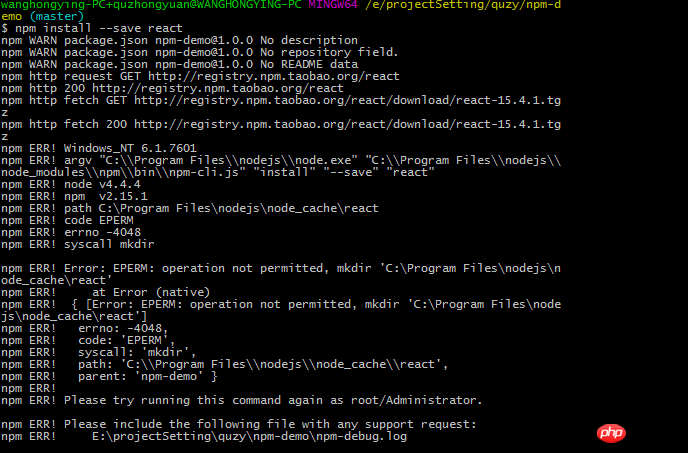 权限不足,如果-g是需要权限的 mac需要在前面加sudo根据你的系统去找