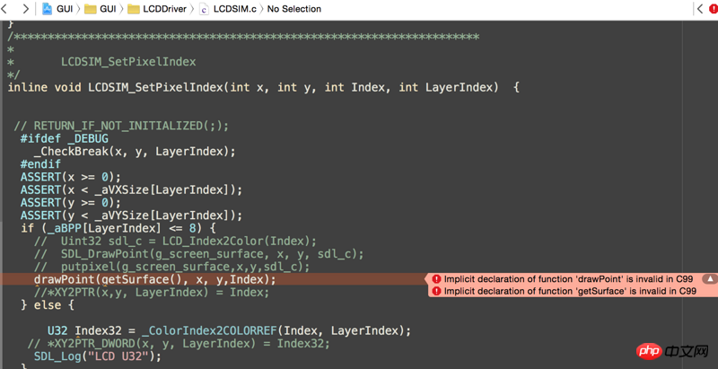 然后报错Implicit declaration of function 'drawPoint' is invalid in C99 搜过网上说的一些说法是改Build Setting 的 C Language Dialect,然并卵,我觉得应该是找不到这些方法才会导致这样,求教要怎么调用.c里面的方法,或者有别的什么解决方法