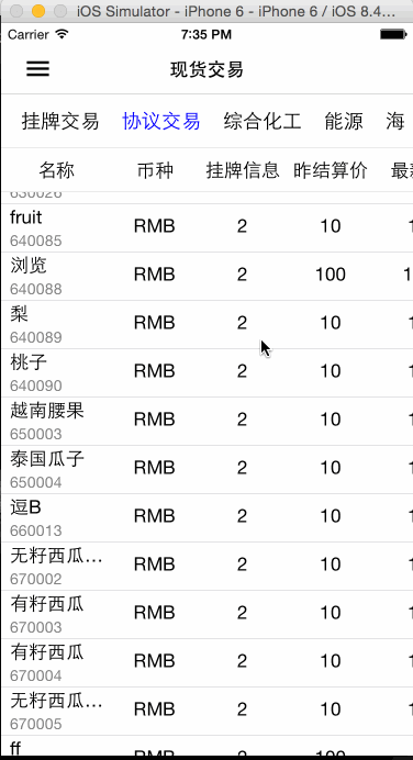 由于要实现表格横向滚动时第一列保持不动,所以这里用了两个TableView(第一列是一个单独的TableView,右边整个是一个TableView)。然后我通过在tableView: didSelectRowAtIndexPath: 方法里触发另一个表格的selectRowAtIndexPath 事件来实现选中行同步,但是这样的话同步表格的选中行的高亮效果会有延迟,动图中第四次点击可以看得比较明显。