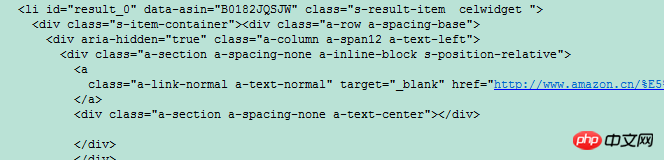 <li id="result_0" data-asin="B0182JQSJW" class="s-result-item celwidget ">jsoup抓数据 我用的doc.select("li.s-result-item").select("li.celwidget") 各种都试了 就是取不到啊