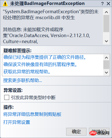 1、最近做的项目要求在VS中连接oracle数据库,从网上看了很多方法,都不好使,数据库连接的代码如下,按要求引入了Oracle.DataAccess.Client,但是项目启动时一直报错,报错信息以及代码都粘贴于下方;