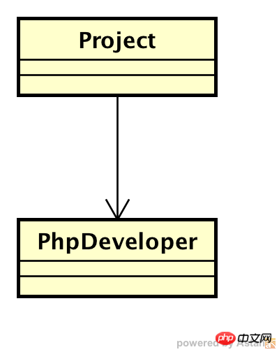 可以看到Project是依赖于JavaDeveloper的,这时如果需求突然变了,java开发者被赶出团队,进来php开发者,只能硬改Project类了:
