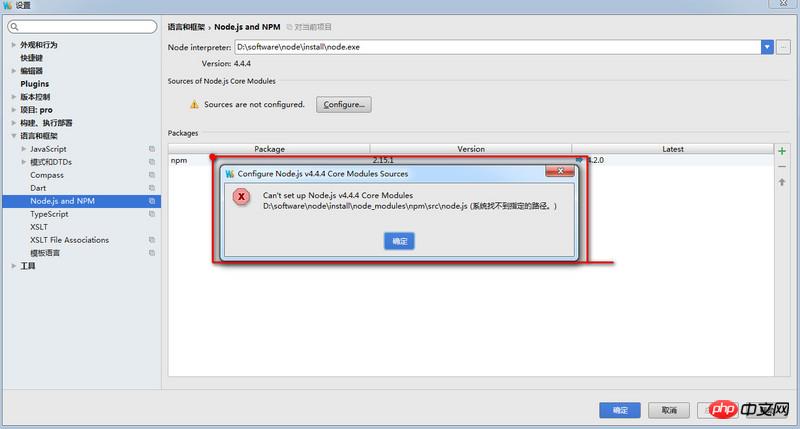 Can't set up Node.js v4.4.4 Core Modules D:\software\node\install\node_modules\npm\src\node.js (系统找不到指定的路径。)可是我选的路径是: