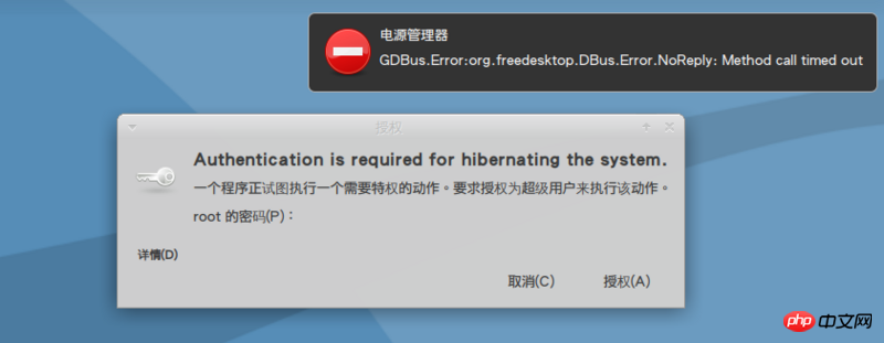 使用debian sid + xfce4作为日常的桌面pc,硬件是hp的本子。使用中发现不能正常挂起/休眠。每次离开后,回来晃动鼠标或点击键盘唤醒屏幕时总是出现如附图所示的告警提示,尝试解决无果,求解决办法或思路。