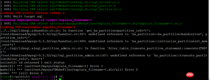 /root/download/mysql-5.5.32/sql/handler.cc:347: undefined reference to `ha_partition::ha_partition(handlerton*, partition_info*)'
