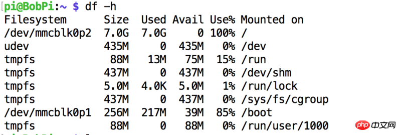 我的树莓派(Raspbian系统,系统盘/dev/mmcblk0p2)在安装一个软件的时候出现了No Space Left On Device的警告,诸如Webmin的各种服务也基本瘫痪。于是发现系统盘已满: