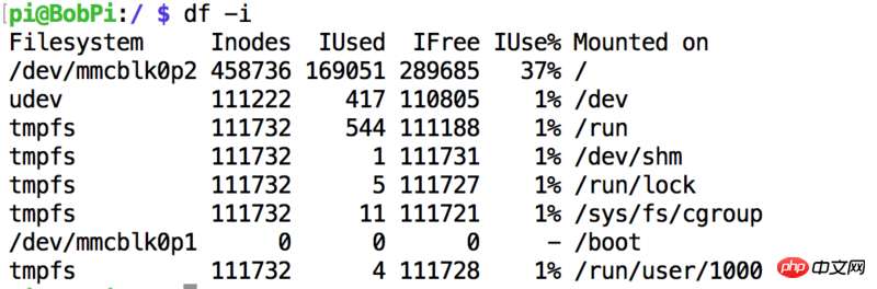 于是我删除了/home/pi下的一个文件夹,发现IUse%值变成了37%,开心,以为又可以用Samba看片儿了: