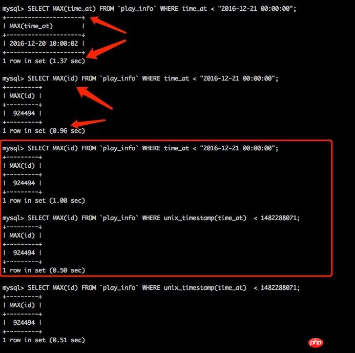 为什么time_at 用unix_timestamp 函数包裹一下之后,时候时间花费少了这么多?