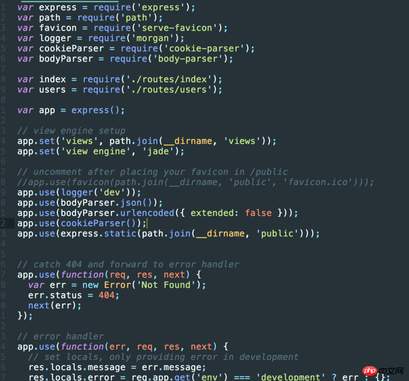 在入口文件里面,比如app.js,一般都是在这个里面注册中间件等等,导出app,然后在你需要用到的路由文件里面直接引入这个app,比如app.get("/hello", function() {})