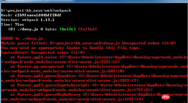 在编译时遇到jsx格式的内容就会报错,正规格式的js代码可以正常编译报错内容: