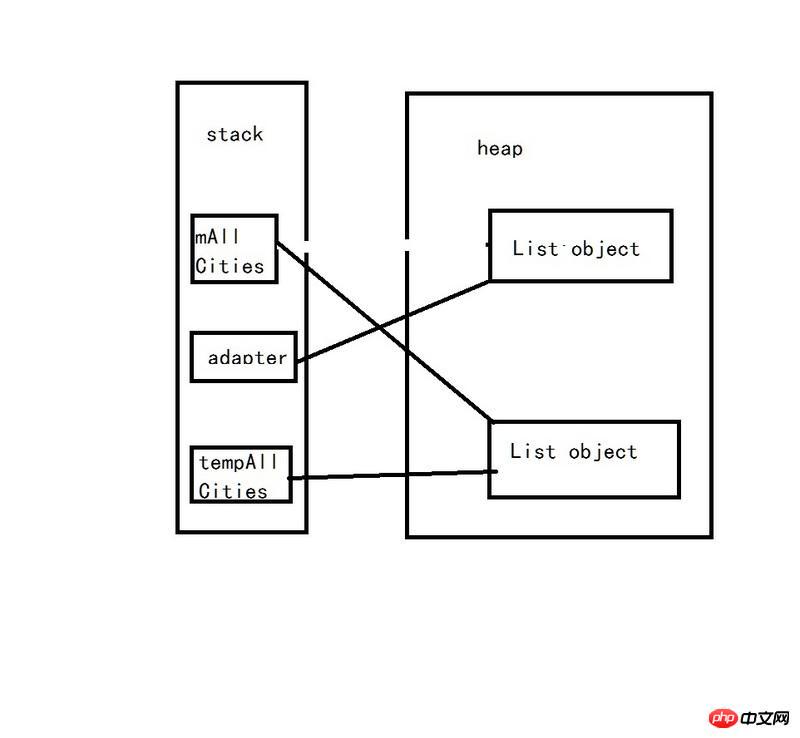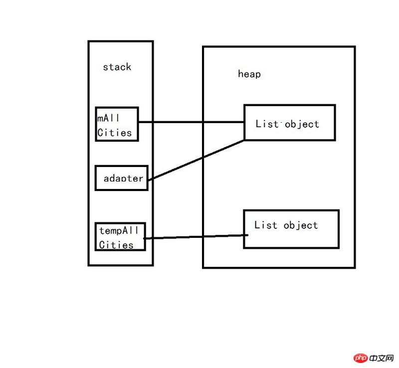 你第二种中mAllCities已经有了新的引用,跟你原来绑定adapter的mAllCities没有了关系 所以你只是更新了mAllCities的新指向,却没有改变adapter绑定的那个mAllCities