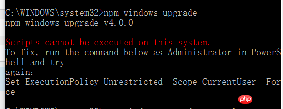想升级node,结果显示无法执行脚本?然后在想问一下,类似这种npm安装命令行报错怎么看错误的关键点?