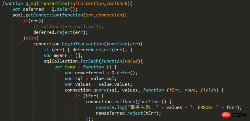 然后我这里封装了一个函数、对传入的数组做循环插入或更新之类的操作、如果有一条失败了就回滚、全对了就commit