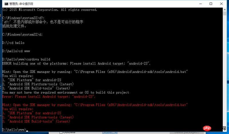 ERROR building one of the platforms: Please install Android target: "android-23".