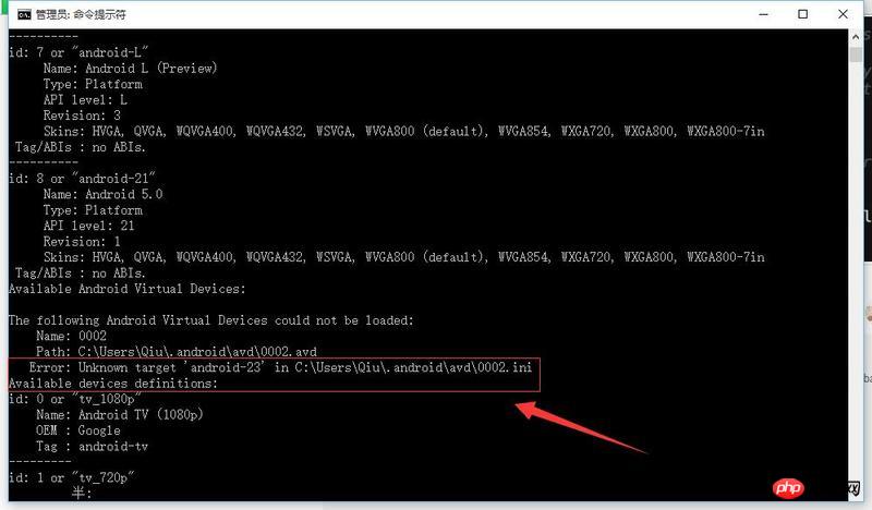 android list 提示无法载入你之前创建的 emulator 模拟器,建议你删除它,再执行此命令。(另外我推荐一款软件。Genymotion 会比 emulator 性能更高。)