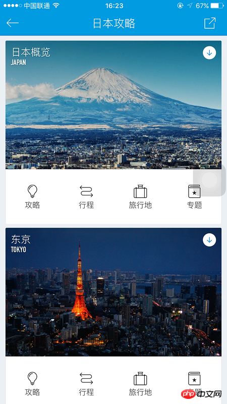 这是一款旅游类APP的攻略内容,每个目的地的右上角都有一个下载标志,点一下就可以下载到本地数据库,可以离线查看,大概每个攻略内容有200M左右。