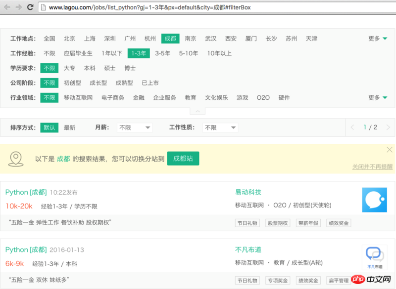 'http://www.lagou.com/jobs/list_python?gj=1-3%E5%B9%B4&px=default&city=%E6%88%90%E9%83%BD#filterBox'