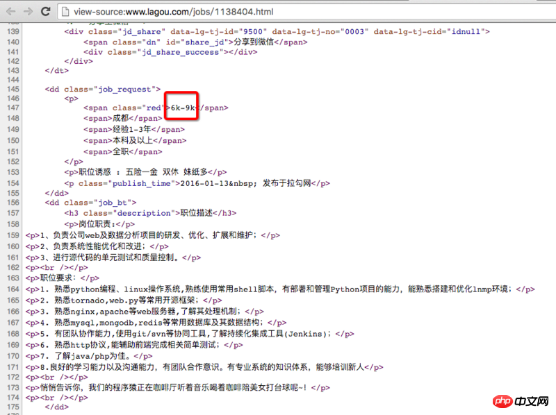 我想要获取的内容如下:"6k-9k" 即每个岗位的薪资