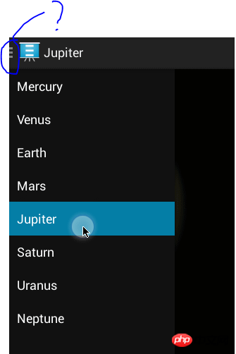 //为了生成工具栏左上角的动态图标 mDrawerToggle = new ActionBarDrawerToggle(this, drawerlayout, toolbar, R.string.drawer_open, R.string.drawer_close); mDrawerToggle.syncState(); drawerlayout.setDrawerListener(mDrawerToggle);