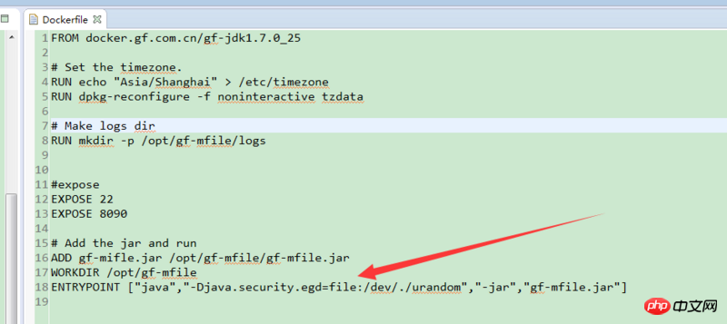 因为,现在要将log4j的配置文件放到,jar 包文件外,故而,需要修改Dockerfile 配置文件,最后执行的java 命令(ENTRYPOINT)。