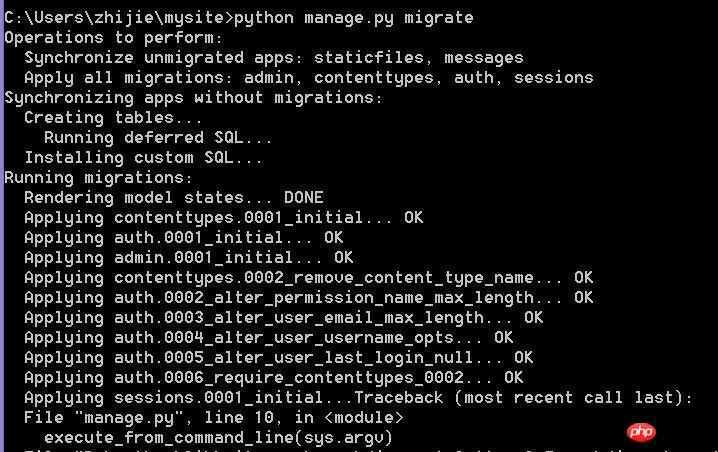 然后按照新建了一个django项目,修改了settings.py的数据库设置后,用migrate命令发生错误