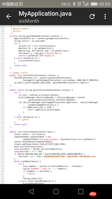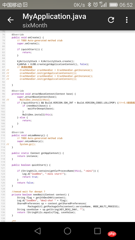 前段时间加了一个包后就出现了65535的问题,但是精简包后还有这问题,于是就采用了multidex的拆包方法,但我没有继承它包中的application,还是继承的原生的application,然后在部分手机上进入时会有1到2秒的白屏,一些系统版本较低或者性能较差的手机上白屏时间更长,或者直接anr了,这该如何解决,具体代码如下,手机截图较渣