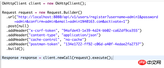 这是我自己调试时用 postman生成的okhttp 的java代码。