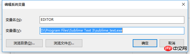 变量名应该是EDITOR,没有前面的$,变量值就是sublime_text.exe所在的路径