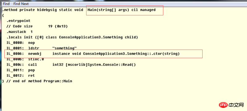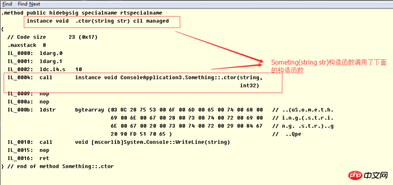 而main函数中调用的构造函数则是Something(string str)如下图IL分析: