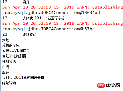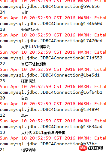 System.out.println(e.getGenreid()+"\t"+e.getArtist()+"\t"+e.getTitle());