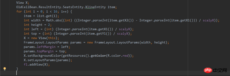 这是addview的代码,通过设置margin来达到相对的“绝对布局”,使用的直接就是px。fl.addview中的fl就是findviewbyid得到的布局里的名字为fl的布局
