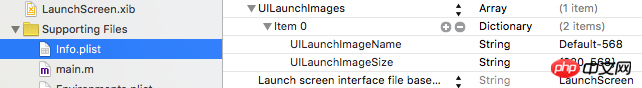 apple官方文档 https://developer.apple.com/library/prerelease/ios/documentation/General/Reference/InfoPlistKeyReference/Articles/iPhoneOSKeys.html#//apple_ref/doc/uid/TP40009252-SW1 查找UILaunchImageName 原话是: A string containing the name of the PNG image file. 字符串,一个PNG图片文件名字。 The image file must reside at the top level of the app bundle. 文件必须在项目文件夹的根目录(的最顶层?第一个文件?我的是放在第一个)。 The name you specify for this key should not include a filename extension, nor should it include modifiers such as @2x, -568h, ~iphone, or ~ipad. 在这个KEY值里指定的文件名,不能包含扩展名,去掉其他后缀,比如 @2x, -568h, ~iphone, or ~ipad. On disk, your image filenames may still include the @2x, -568h, ~iphone, or ~ipad modifiers as appropriate, although they are not required. 实际的文件名仍然包括这些后缀,@2x, -568h, ~iphone, or ~ipad等等。 The system automatically considers such modifiers when choosing which file to load. 系统会自动考虑选择哪个带后缀的文件。