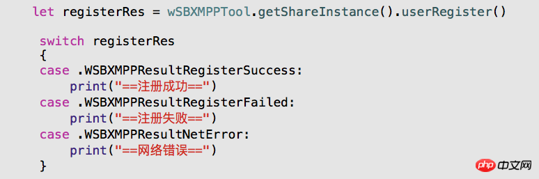 1.我有一个swift项目,在XMPP注册模块,我使用闭包传值(代理会了,学学闭包用法),把注册结果传回控制器。
