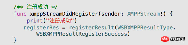 func xmppStreamDidRegister(sender: XMPPStream!)方法你的