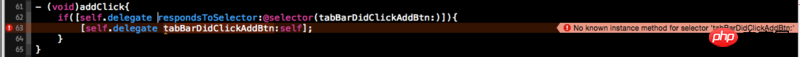 self.delegate 所遵从的协议中没有声明 tabBarDidClickAddBtn: 方法,声明一下就好了
