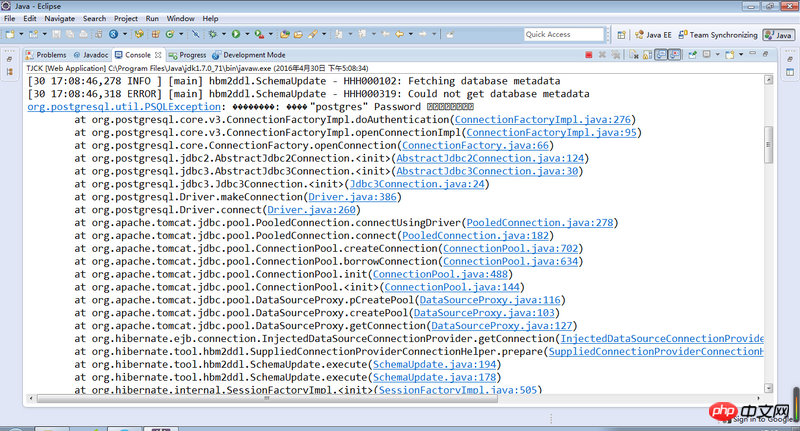 截图没提到找不到哪个类,下一页的报错信息怎么写的?postgres启动了吗?连接字符串、账号、密码写对了吗?