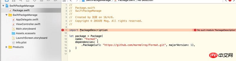 但是这里“ PackageDescription”报错,系统提示没有这个库,使用swift build也无效。