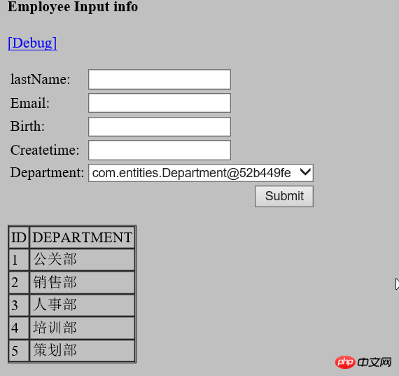 显示:为什么显示的是Deapartment的对象地址呢?这说明listKey和listValue不起作用啊..怎么回事?