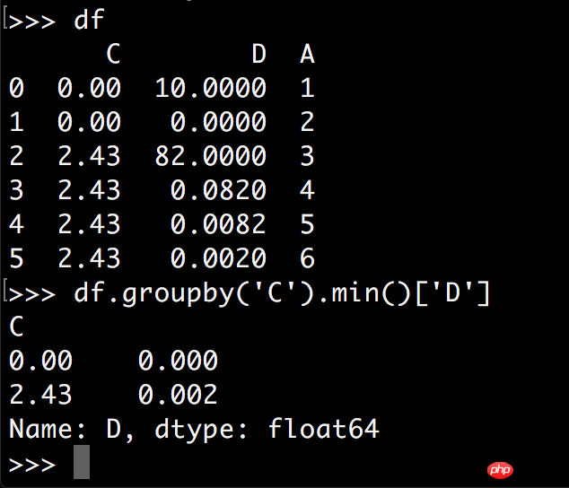 c = df.groupby('C').filter(lambda x: x.min(['D']))