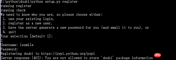 原因:有无聊的人注册了和你一样的包名字:https://pypi.python.org/pypi/doubi