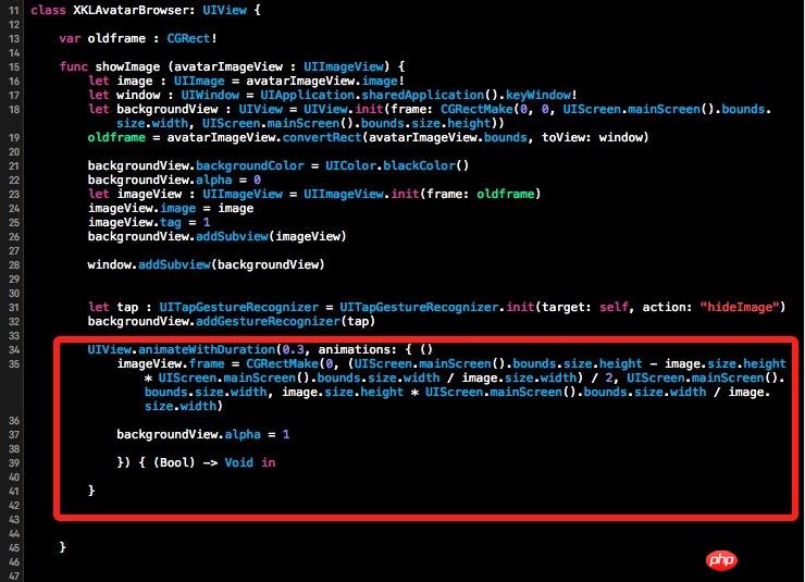 写了一个用于放大照片的类,点击照片后有一个放大的动画效果,代码如下: