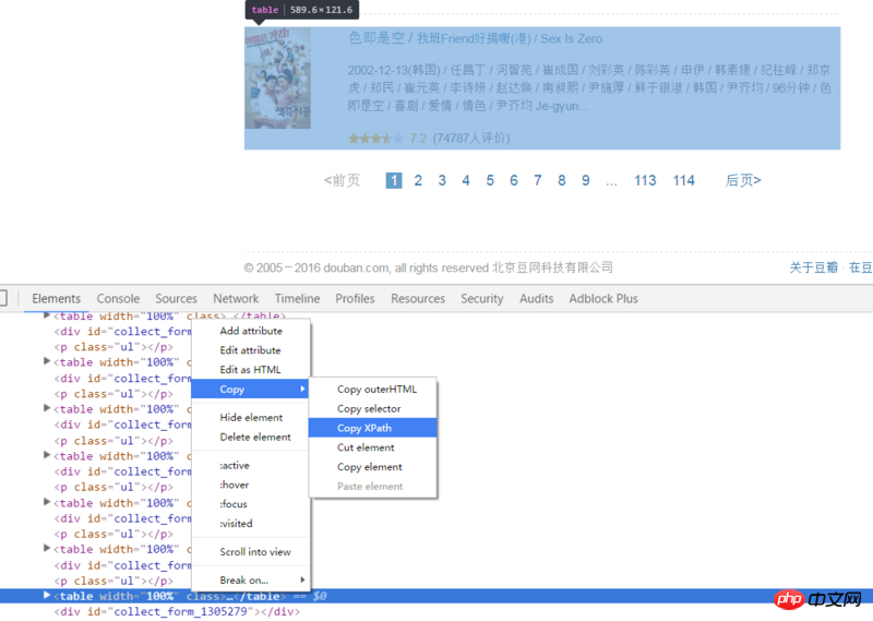 用chrome的拷贝xpath功能,拷贝最后一个电影的xpath,是第17个.