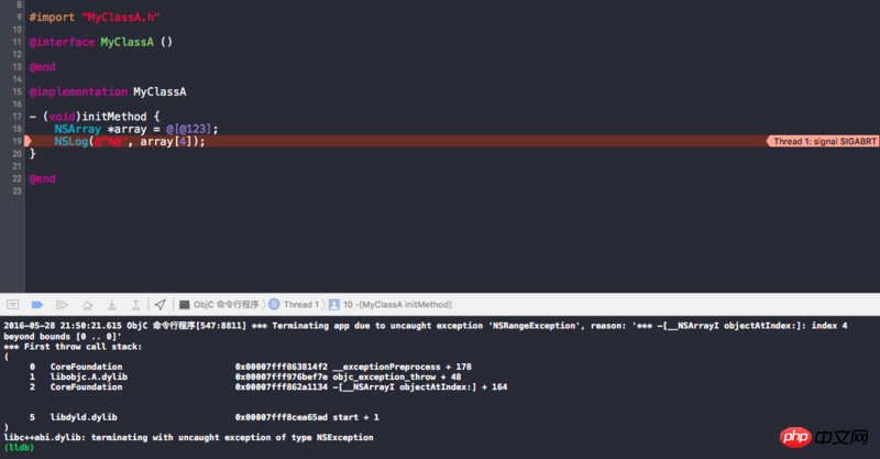 可能没太描述清楚, 问题是现在的工程中, 如果出现错误(例如数组越界)的话, Xcode 不会像[图1]那样提示错误信息(例如图上写着 reason: xxx).