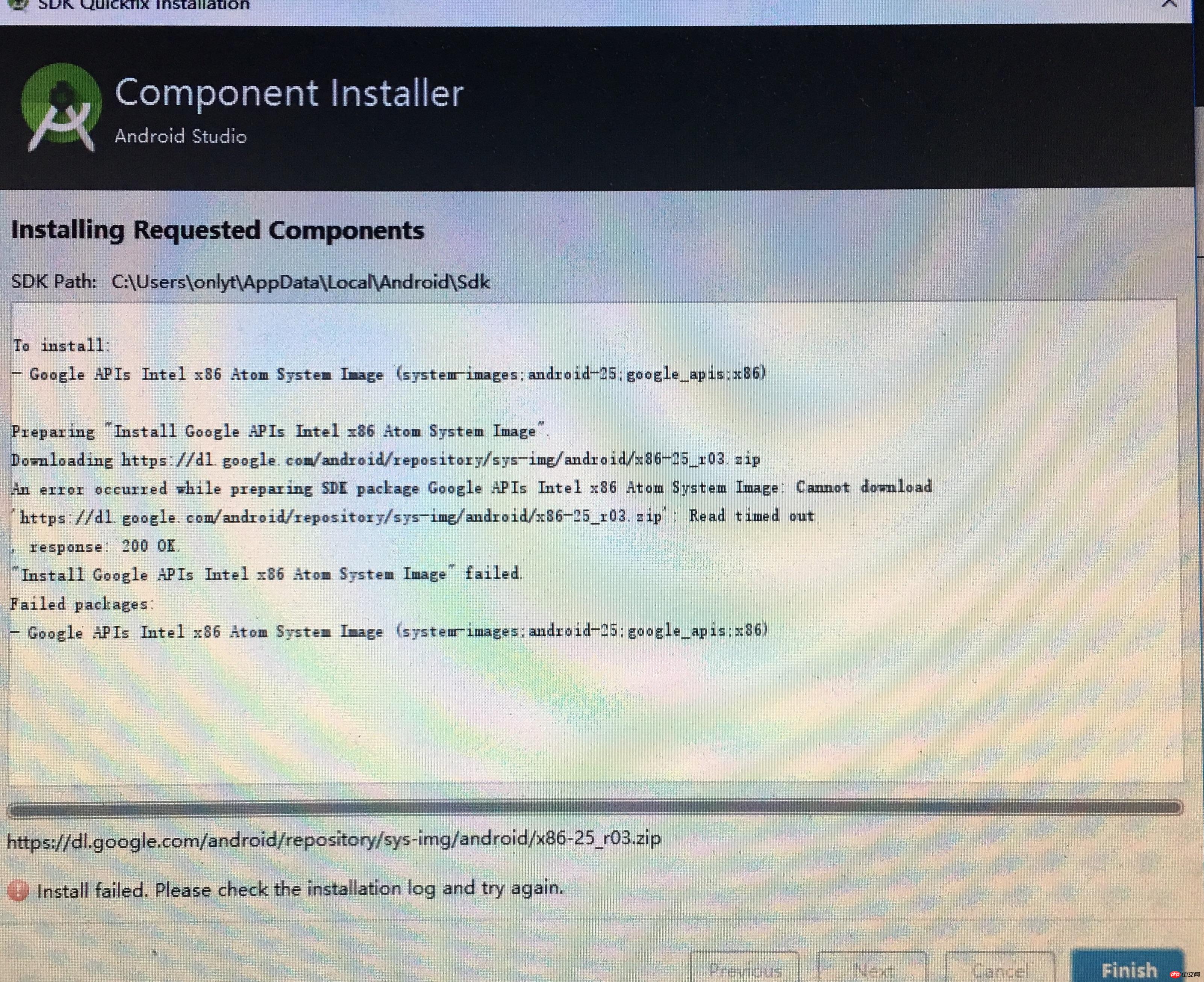 sdk 既然可以下载 你把镜像下载好之后再 AS 中直接添加 不用下载的。