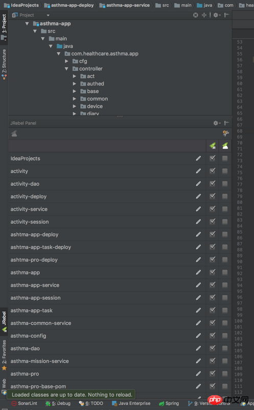 我是因为用了maven工程,jrebel只会重新加载当前maven项目,对依赖的项目更新不是很给力.所以需要将涉及到的依赖加如jrebel.我用的是idea.在左下角有有个jrebel图标,打开后将所用到的依赖都勾选上.如下图