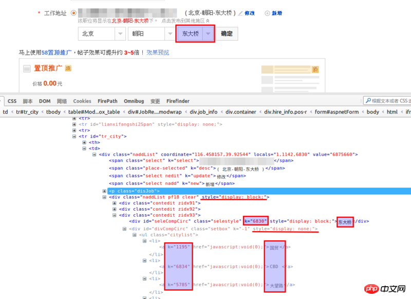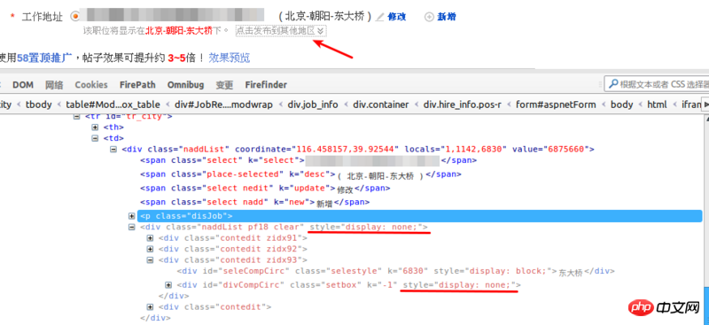 最近学习Selenium,想做一个58后台自动发帖程序, 在修改工作地址时无法定位到指定元素位置,请高手指点!
