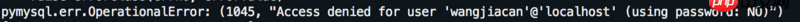 wangjiacan没有这个用户或者用户没有密码 尝试命令行连接一下mysql